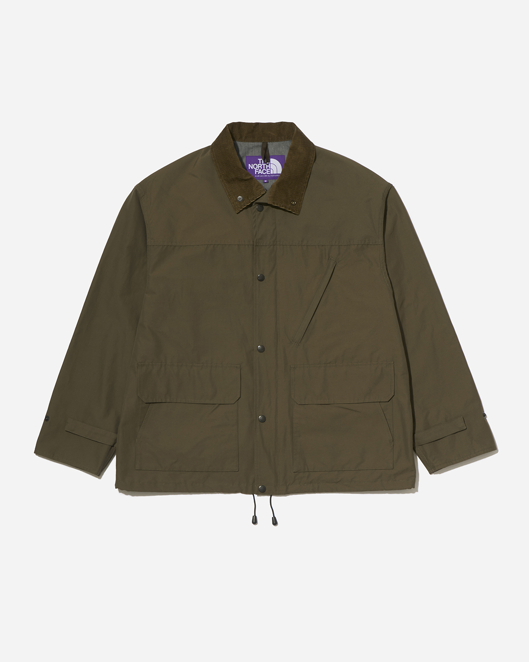 フロントはファスナーとドットボタンのダブルクロージャー仕様となっており、軽く羽織れるアウターとして提案。クラシックなデザインをベースに、THE NORTH FACEグリズリーピークジャケットのポケットディテールをミックスしています。腰ポケットは定番のマウンテンパーカと同様に、サイドからもアクセスできる仕様となっており、左前立てに内ポケットが付属しているのもマウンパ同様です。