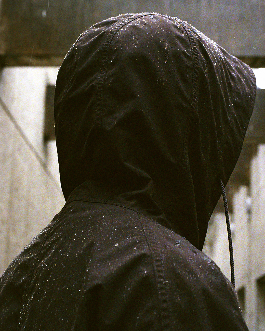 ミリタリーを出自とするアイテムをベースにしながら、前シーズンのスタンドカラー仕様からフーデッド仕様にアップデート。身体や頭部を濡らさないというアウトドアウエアの観点からも、より機能的な一着に進化しています。