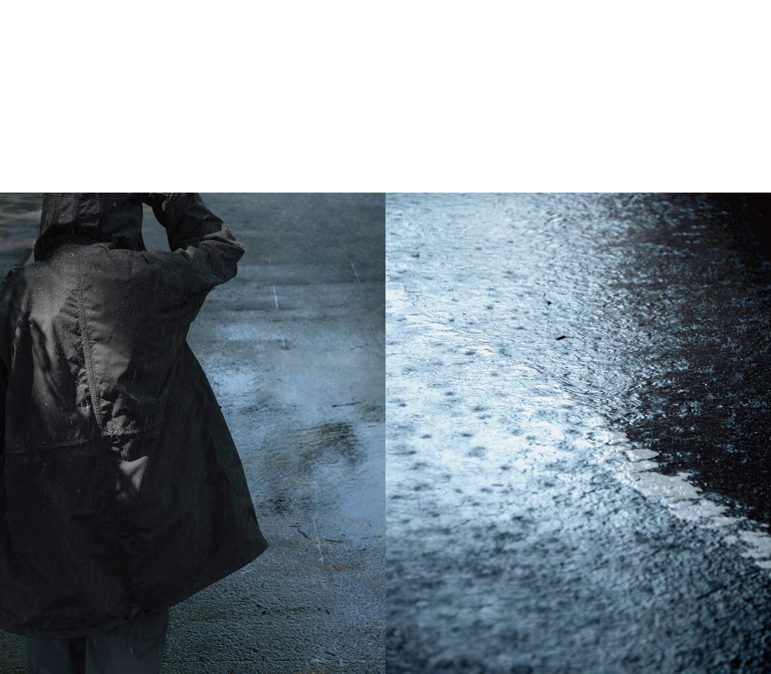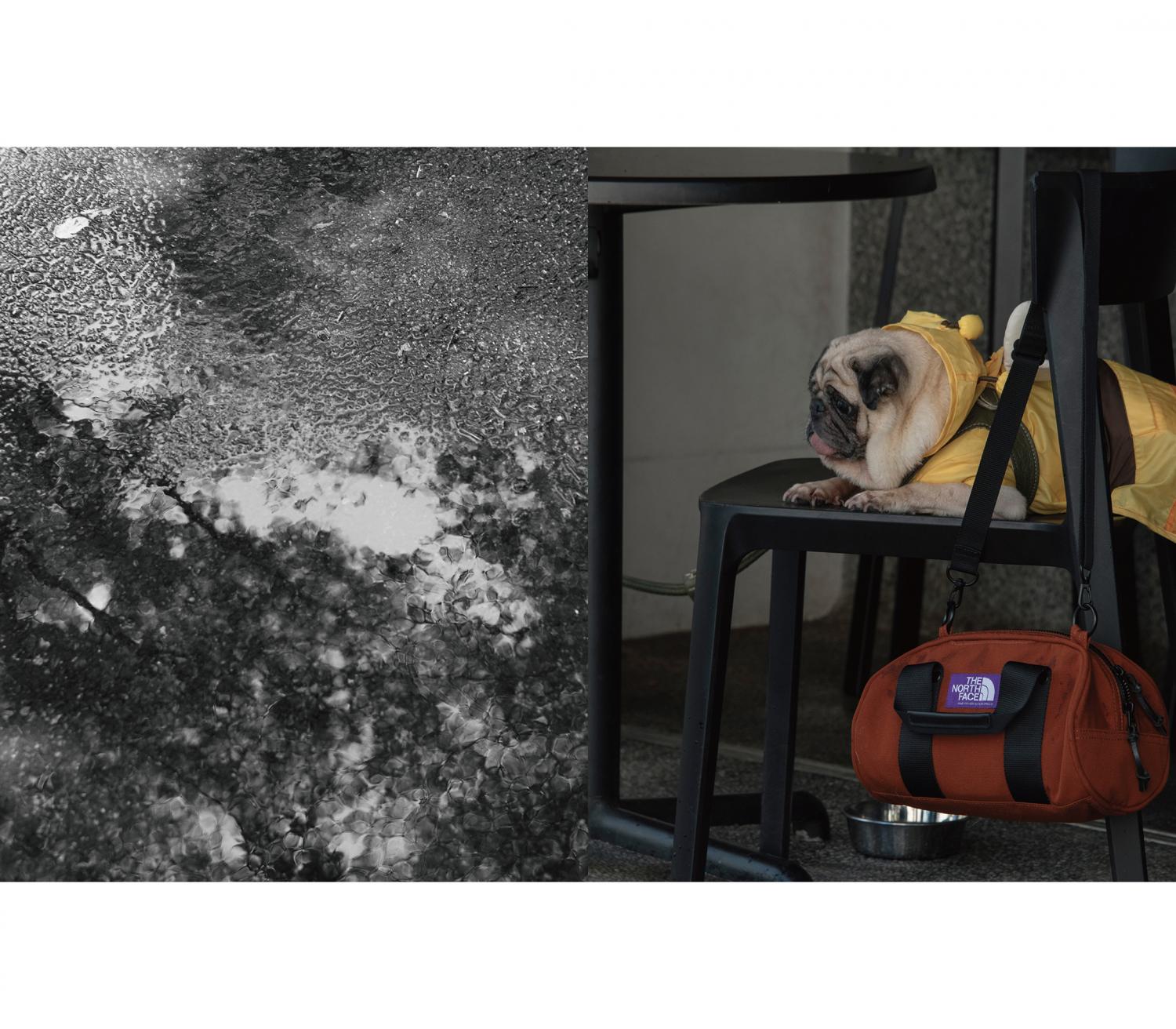 これくらいの雨なら! そう思って外に出ると、雲は急に機嫌を損ねたように、あっという間に土砂降りなんてことも最近は珍しくなくなった。愛犬Momoとの散歩中も、いつ大雨に見舞われるか気が抜けない。だからといって、毎日かっぱや傘を持ち歩くのも違う。そんなわがままな天気の時でも味方になってくれるのが、THE NORTH FACE Purple Labelのフードが付いたフィールドコート。