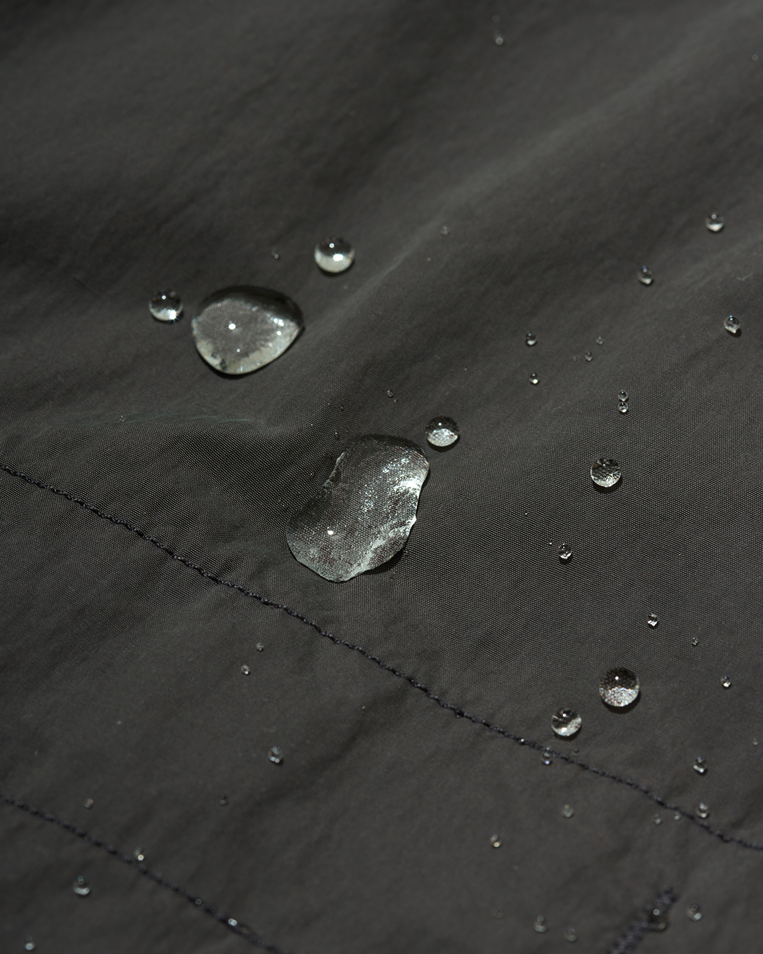 When it comes to weather cloth, the brand’s signature material is the 65/35 Bayhead Cloth — but this time, a new fabric has been developed with a fresh approach. While Bayhead Cloth is woven with a blend of organic cotton and recycled polyester for both warp and weft, this new high-density weather cloth uses organic cotton for the warp and recycled nylon for the weft. The difference in yarn density between the vertical and horizontal threads creates a subtle variation in texture between the fabric’s front and back. Additionally, a light brushing process has been applied to the surface of this firm, structured fabric, giving it a soft, smooth finish despite its high density.
