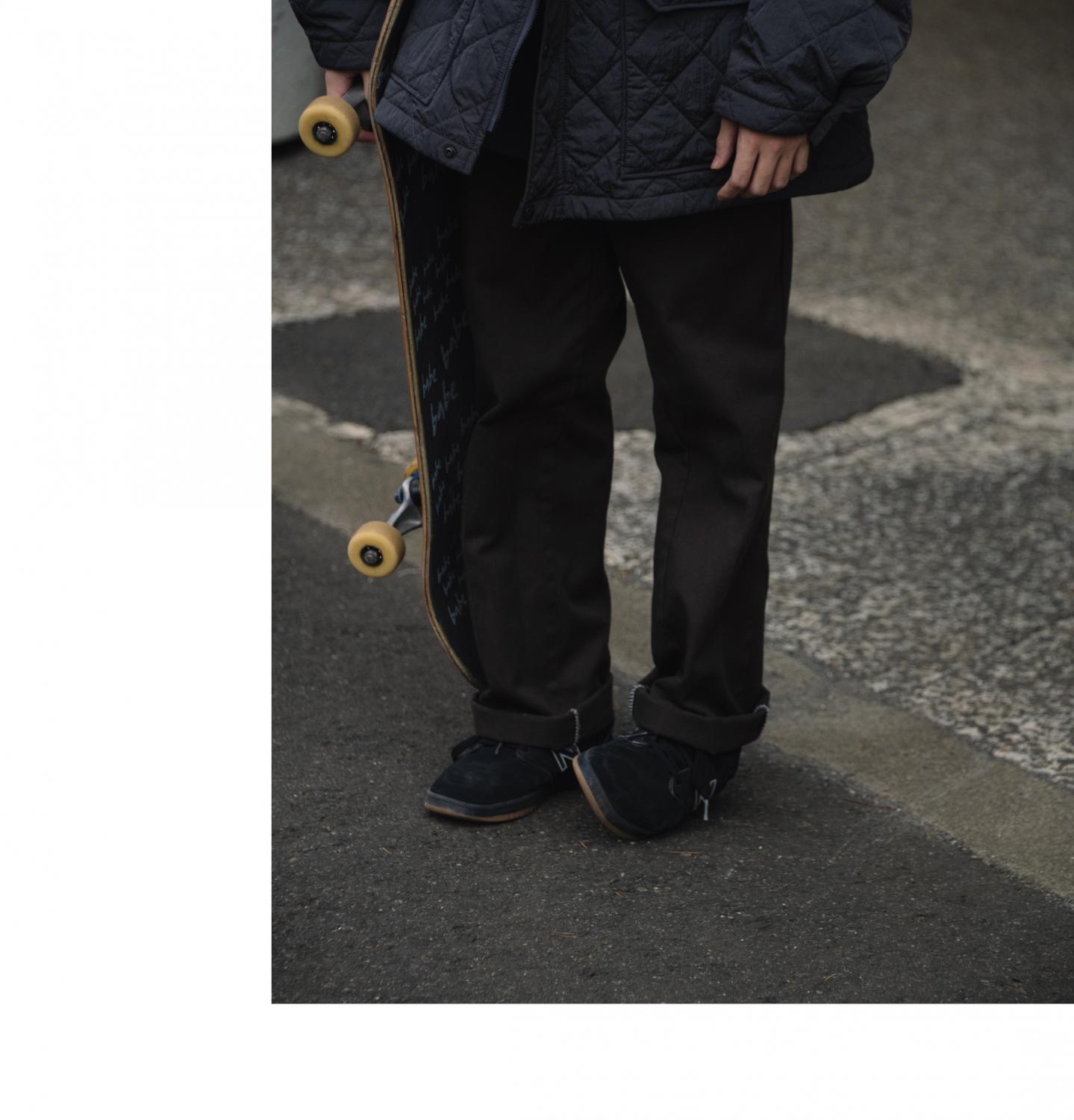 Oshiro, a second-year middle school student, wears the “Quilting Field Mountain Parka,” which features four flap pockets. While inheriting the design lineage of the classic 65/35 Mountain Parka, this version is cut about half a size larger to allow for layering underneath. The roomy body and armholes make it easy to wear over a knit or even a sweatshirt. Made from a three-layer quilted fabric without lining, it stays light and comfortably airy as if filled with soft air, no matter how much you move. Oshiro says he’s grown 10 centimeters this past year, so while it’s a little big on him now, it’ll likely be a perfect fit by next year.