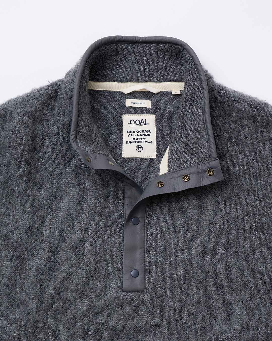 “海”をルーツにしたウエアが多いONE OCEAN, ALL LANDSラインだけど、ラインナップには普遍的なアウトドアウエアをベースに天然繊維でアレンジしたアイテムも多い。そのなかでも印象的なのが、この一着。モチーフとなったのは、クラシカルなフリースのプルオーバージャケットだ。