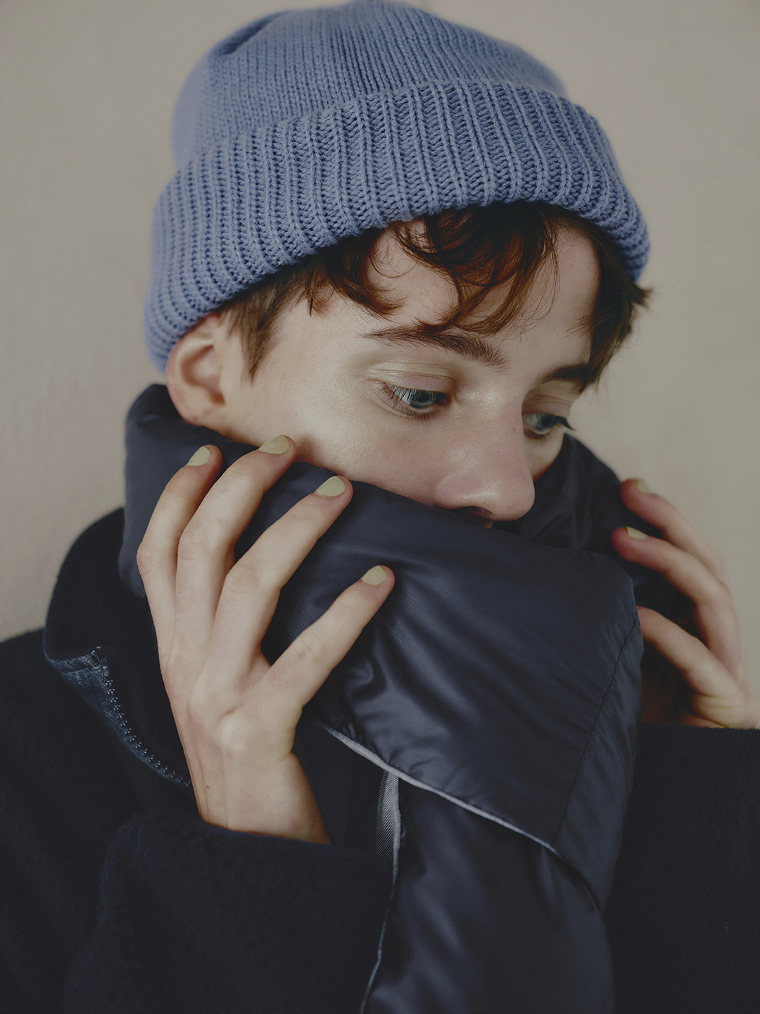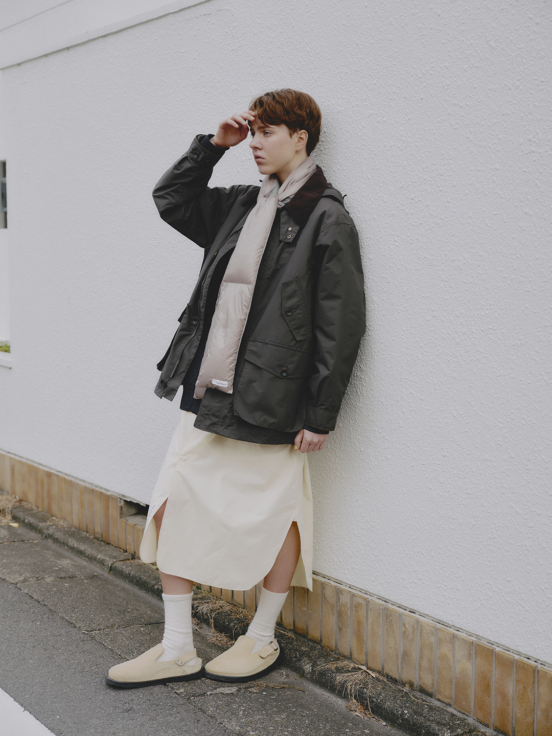 Whenever the rain starts to fall, you always look a little sad — brushing your bangs aside with a sigh, saying you can’t wear your favorite dress. So I found something for you: a down scarf that goes perfectly with your favorite waterproof coat. The sky may be gray again today, but maybe stepping out in the rain won’t feel so bad.