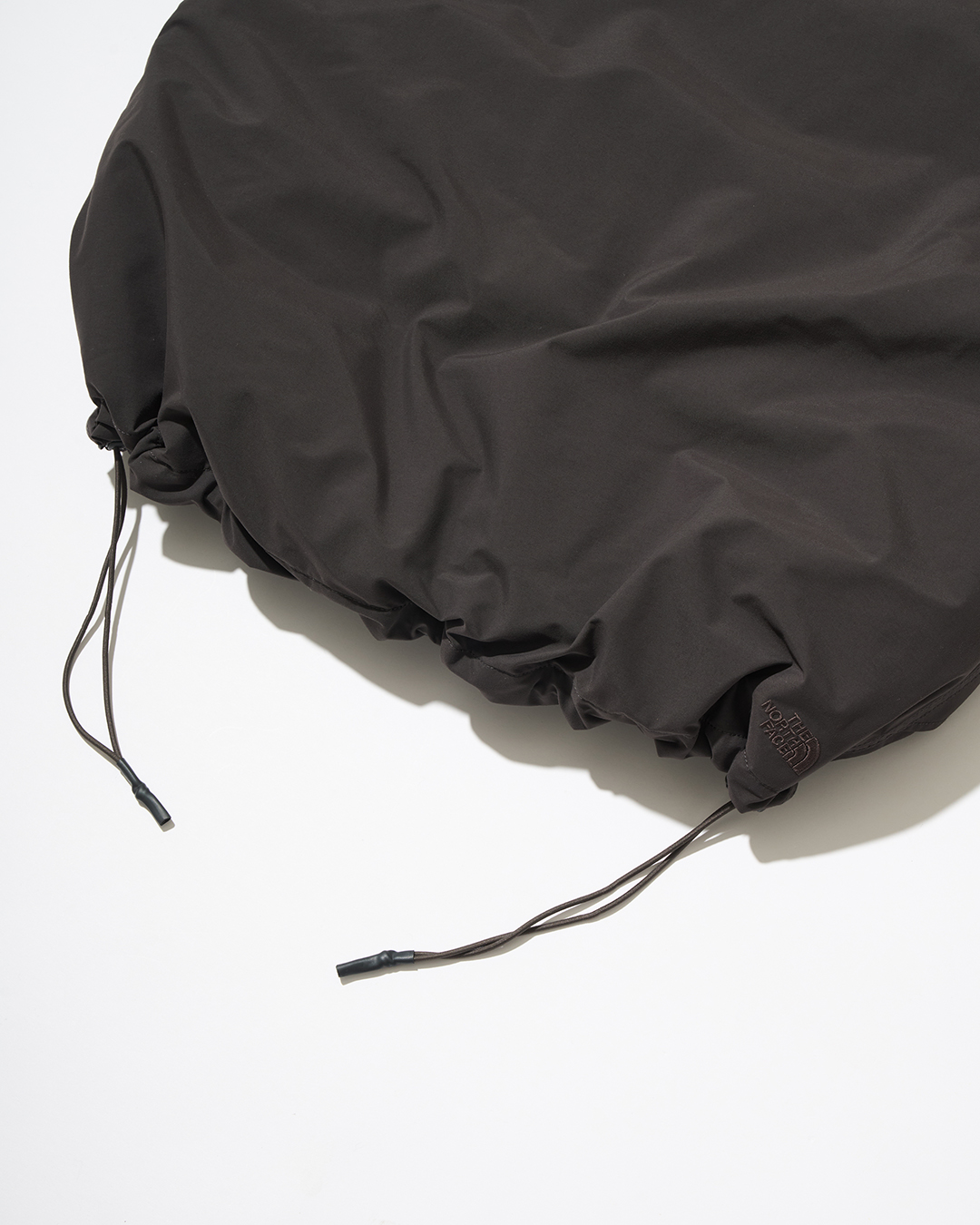 裾にもストレッチコードがあり、シルエットの調整だけでなく下からの冷気を防ぎます。コード先のシュリンクチップは扱いやすさもあり、デザインのポイントとなっています。