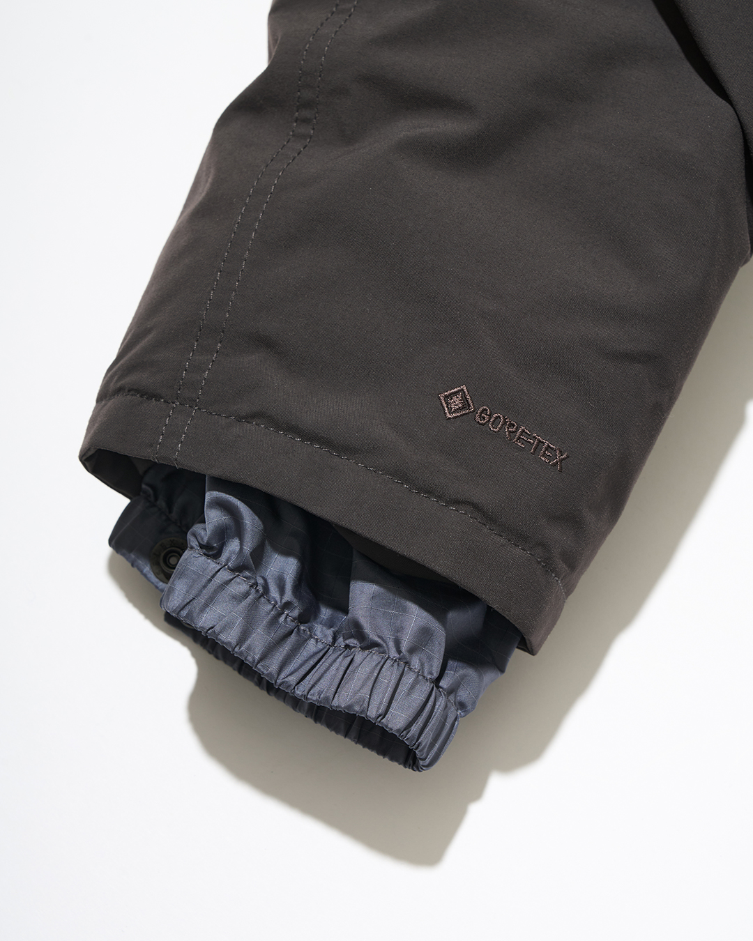 ブランドのシグネチャーアイテムとして前シーズンからリリースしているGORE-TEX プロダクト。アウトドアフィールドで機能する実績とユーザーからの高い信頼を誇る高機能素材GORE-TEX ファブリクスを用いたジャケットとコートに加えて、今シーズンは新たにダウンアウターを作りました。