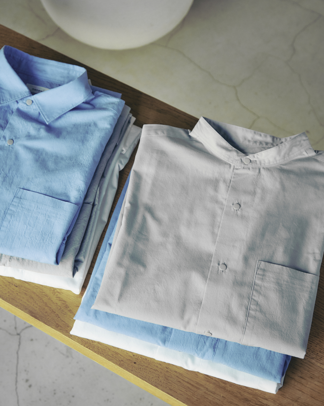 春一番よりも早く、次の季節の訪れを知らせてくれるナナミカのニューコレクション。ナナミカの各店舗では早くも2026年春夏コレクションがスタートし、新しいシーズンの空気が流れ始めています。今季のカラーパレットは、海の風景を思わせるフェードブルーやネイビーに加え、新たな定番としてライトグレーが登場。さらに、乾いた砂のようなオフホワイトやライトベージュ、ニュアンスのあるライトカーキがアクセントとなっています。