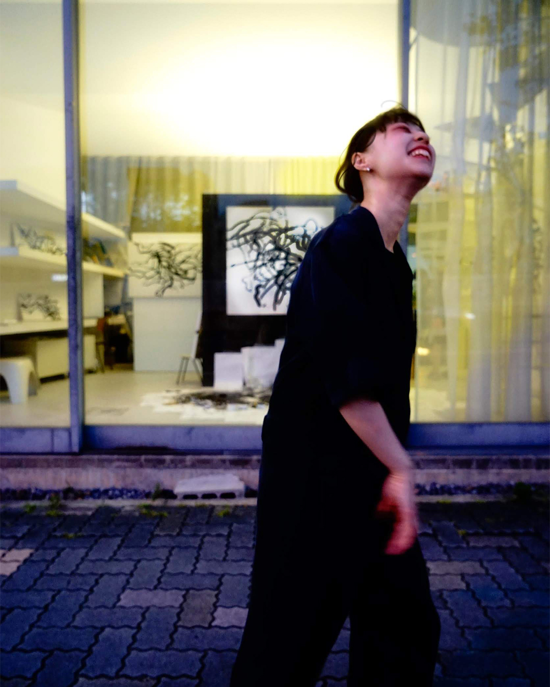 Her practice centers on the themes of recording and preservation, creating installations and drawings that explore environments bearing traces of human presence and seek the essential reality behind human behavior. In recent years, she has been living in Yokosuka, where she collects discarded materials such as iron and copper buried in the yato valley areas, experimenting with transforming these hard remnants into soft materials through dyeing techniques.