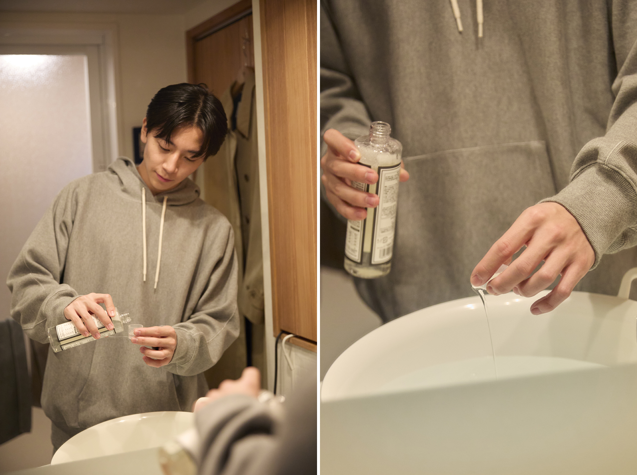 “風呂キャンセル界隈”なんて言葉もあるけれど、コートのケアはちゃんとできているだろうか。体と同じように、コートだって清潔に保たなければ、匂いやシミ汚れの原因になるし、機能低下にもつながってしまう。特に首まわりや袖口、裾といった皮脂や泥が付きやすい部分は、ときどき丁寧なケアが必要だ。頻繁にクリーニングに出さなくても、自宅でできる簡単なケアを習慣にしておきたい。