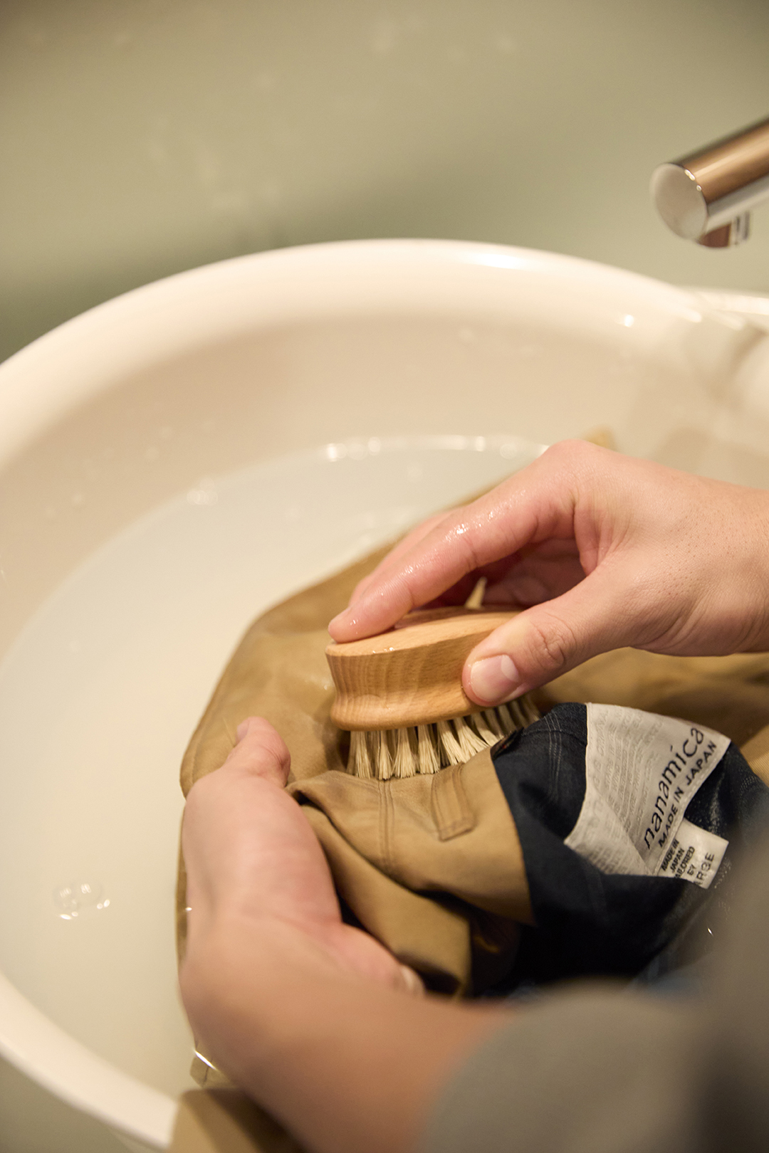 You’ll need just three things: a wash tub, a brush, and a detergent made for outdoor wear. Waterproof and breathable fabrics — like GORE-TEX — can lose their water repellency as dirt builds up. Specialized detergents remove that buildup while helping to maintain or restore the fabric’s original performance. If you don’t have one on hand, a diluted neutral detergent will work as a substitute.