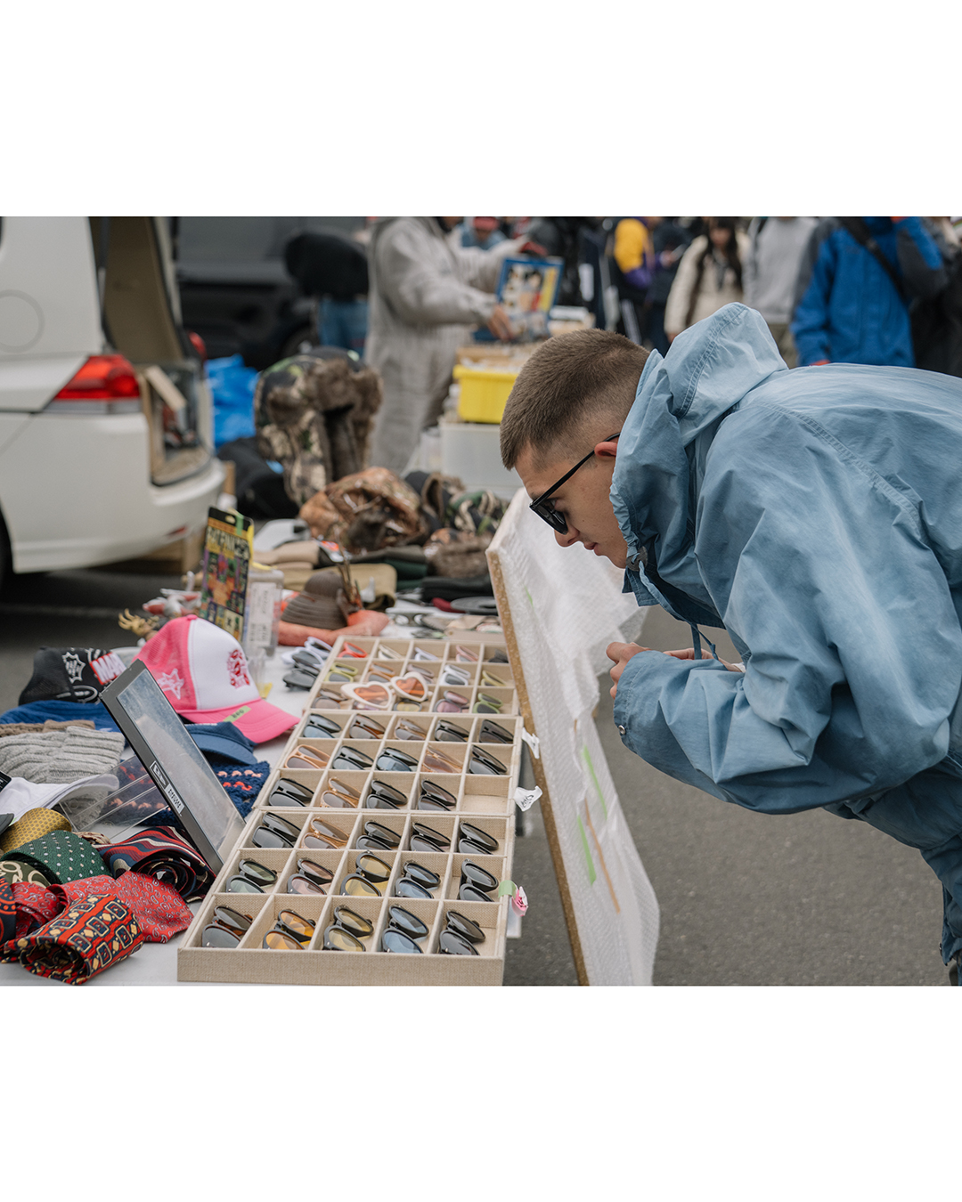 見ての通り、このマウンテンパーカはいつもと一味違う。色は、ムラ染め加工から生まれる奥行きのあるサックスブルー。雲がかった青空のようでたまらなく可愛い。光の当たり方によっても印象が変わり、鏡の前で何度も立ち止まってしまう。定番の65/35マウンテンパーカと違うのはそれだけではない。リサイクルナイロンタフタという生地の表面には、目では見えない細かな起毛加工が入っていて、ソフトな風合い。多少のシワがあってもそれが味になるから、気負わずに羽織れるのがいい。