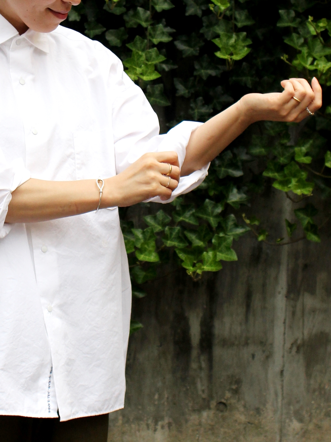 真っ白のシャツに、シックな雰囲気が良く合います。