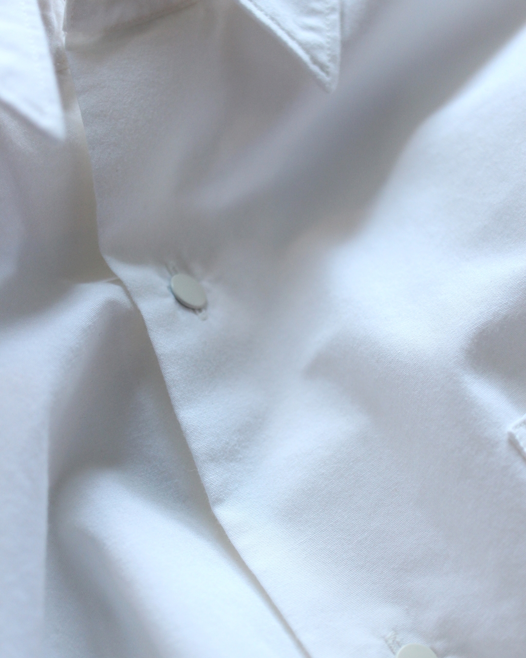 このシャツは、程よくゆるいシルエットが堅苦しさをなくしてくれ、カジュアルからオフィシャルな場
